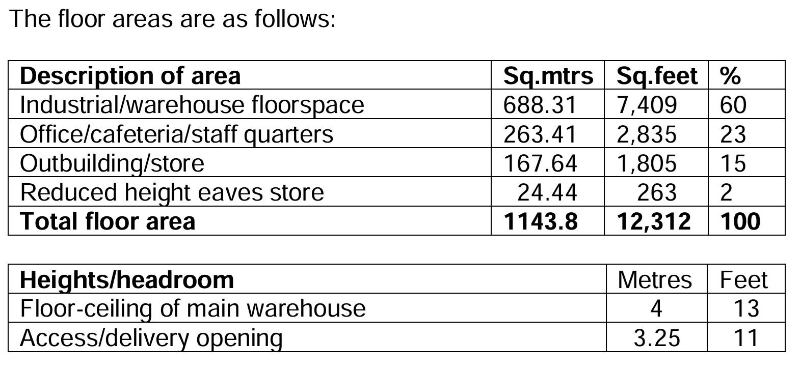 Industrial/warehouse floorspace 688.31 sqm (7,409 sq ft)