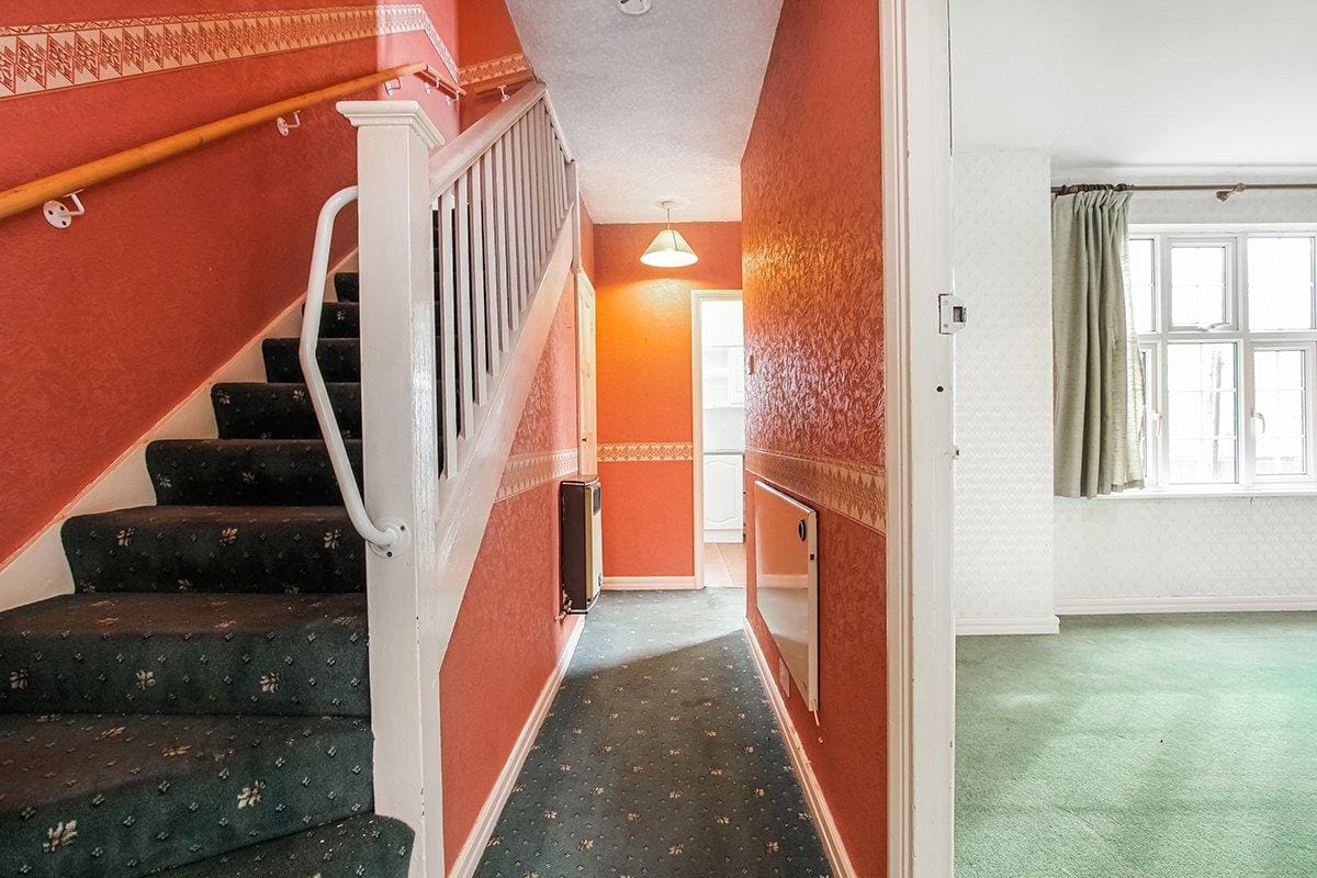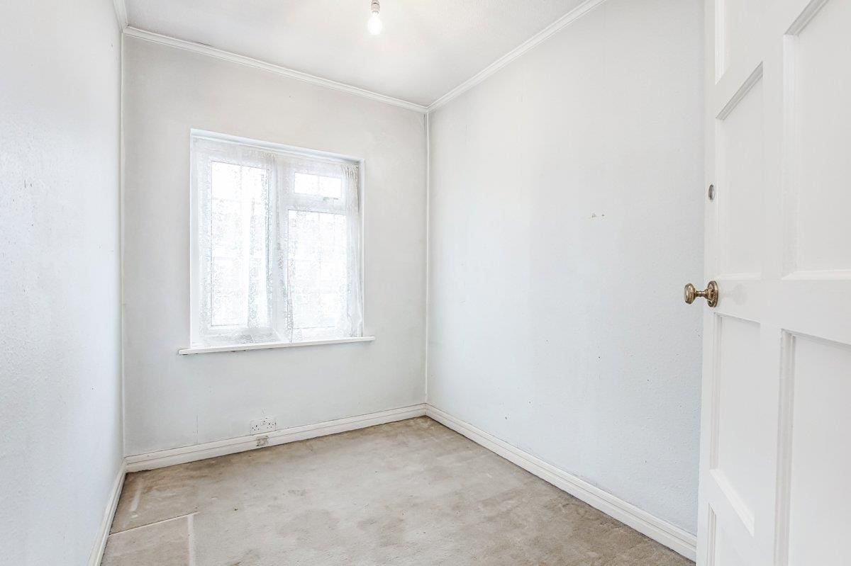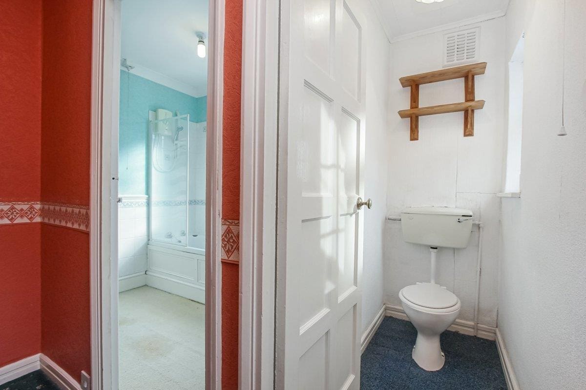 Above is an unmodernised split level flat with four bedrooms, kitchen, family bathroom, separate W / C and loft space