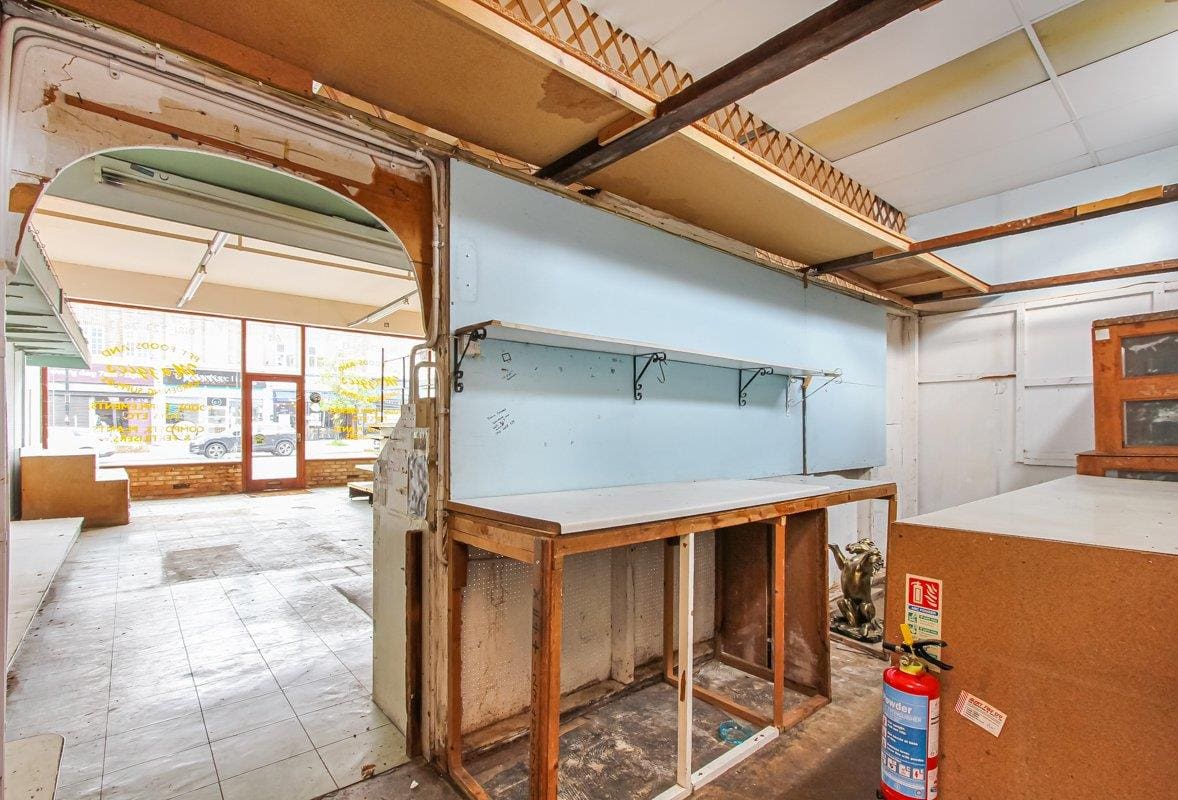 Mid terrace freehold property comprising ground floor retail unit previously used as a pet shop with a range of single storey out buildings to the rear and hard standing land