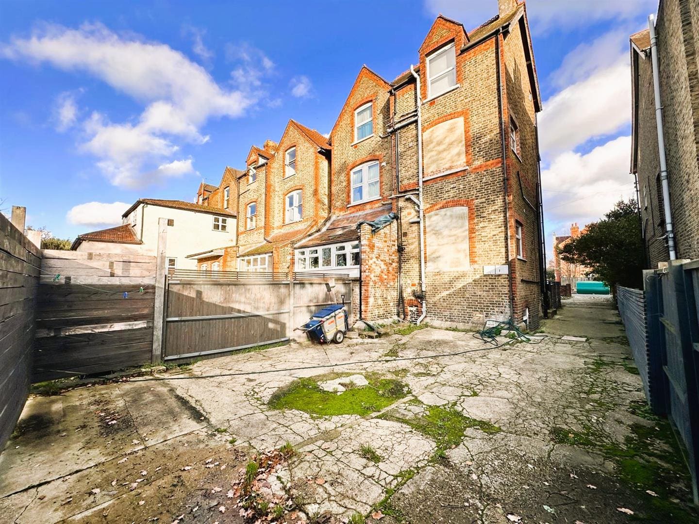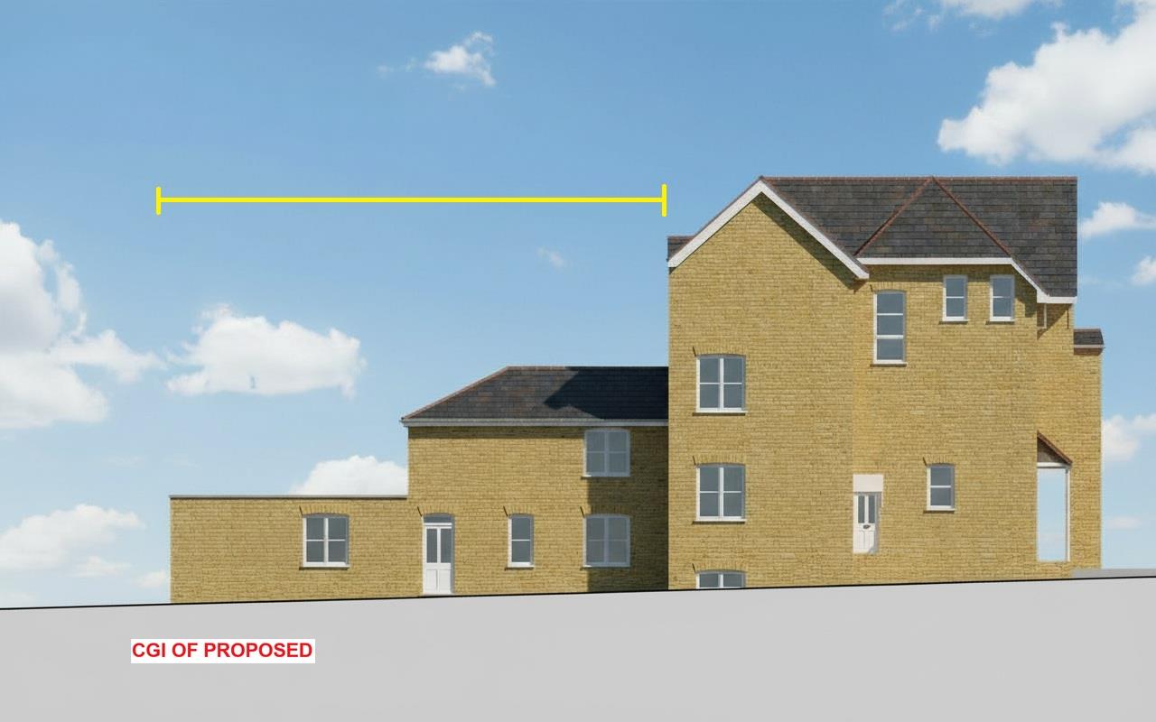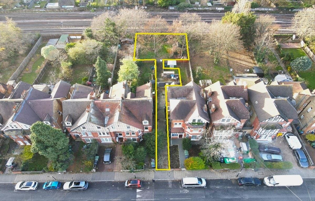 This freehold opportunity is accessed via the driveway to the left hand side of No34, and has planning to construct an attached two storey house onto the existing building and erect a further 2 x detached houses on the land at the rear all with private gardens.