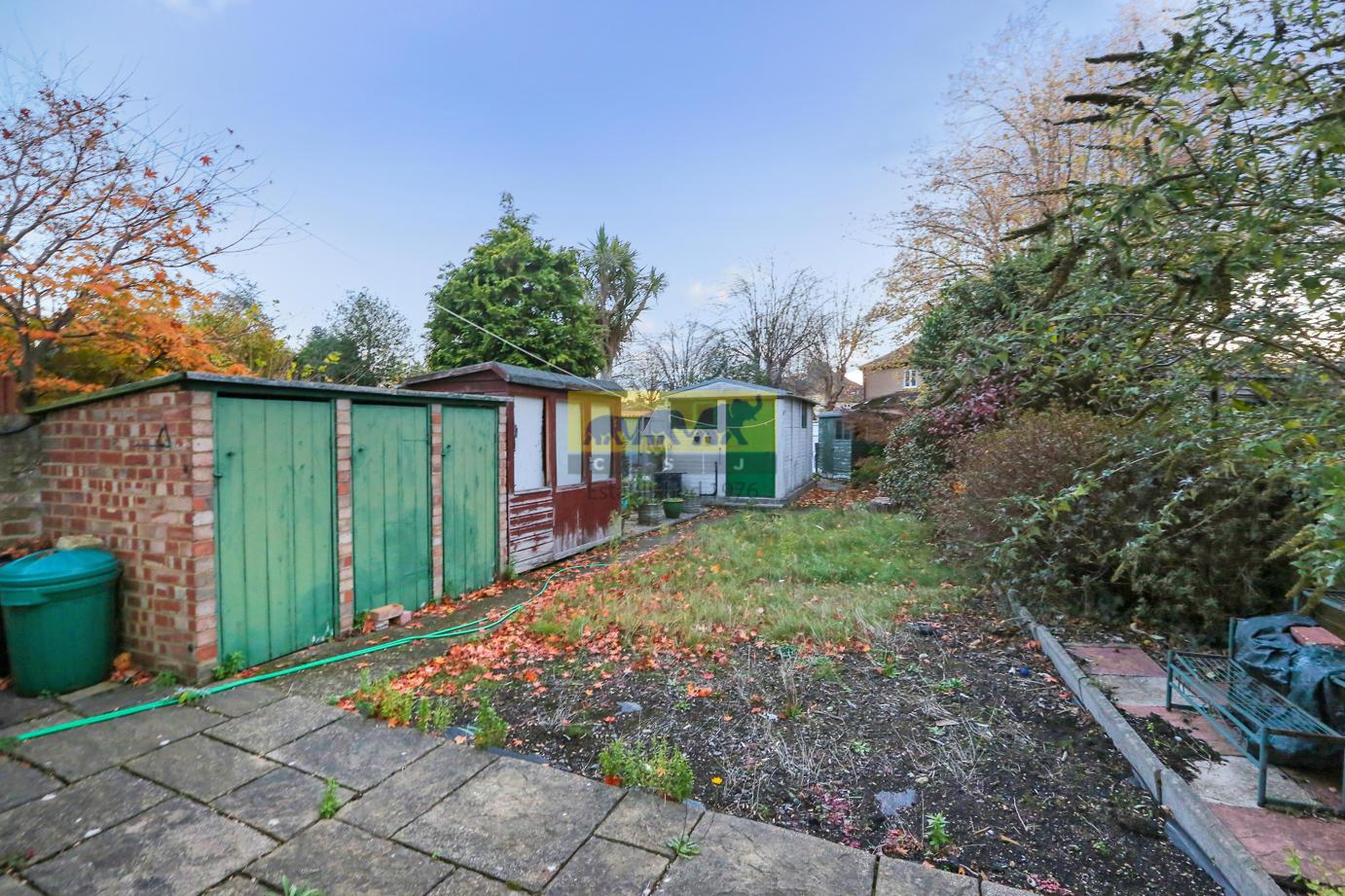 The rear garden which benefits from vehicular access from Sandbourne Avenue is a mix of paved entertaining areas and laid lawn with storage sheds and a lock up garage.