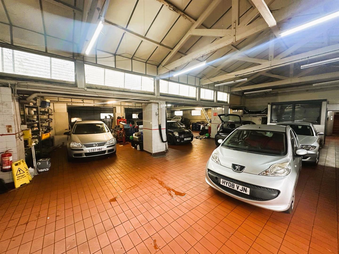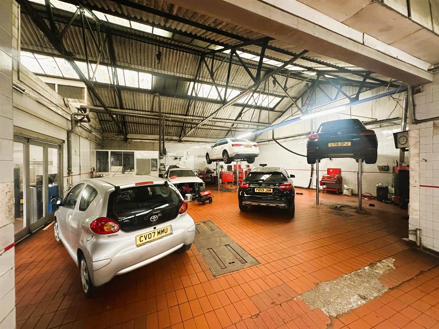 The property is currently used as car repair garage and comprises workshop space with MOT and lift area, offices and store rooms