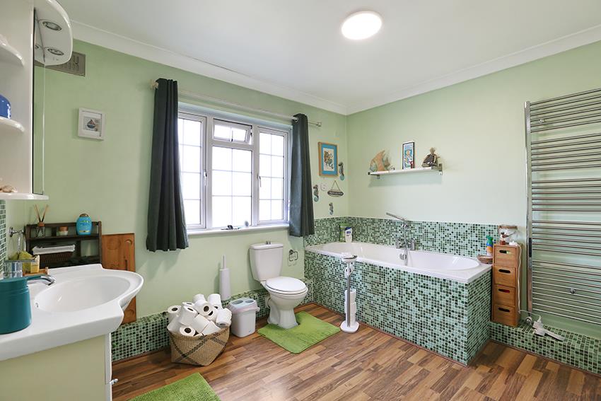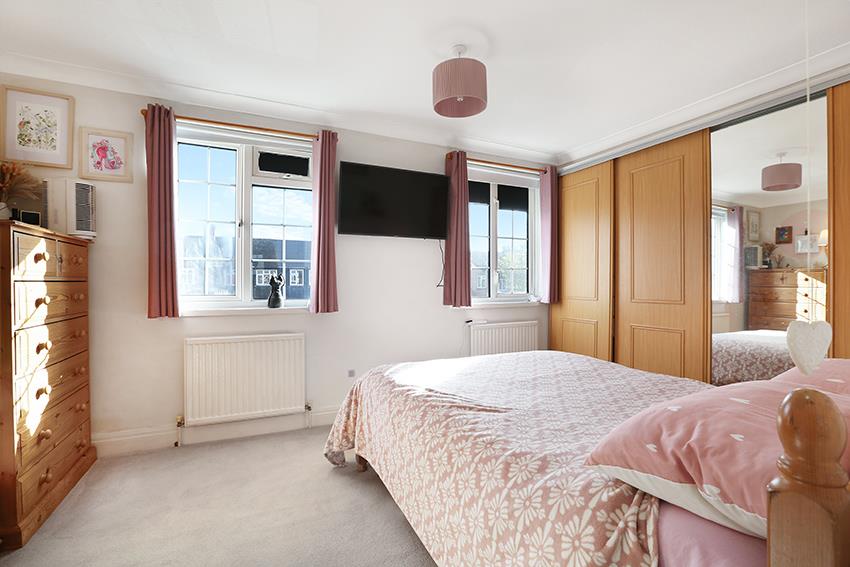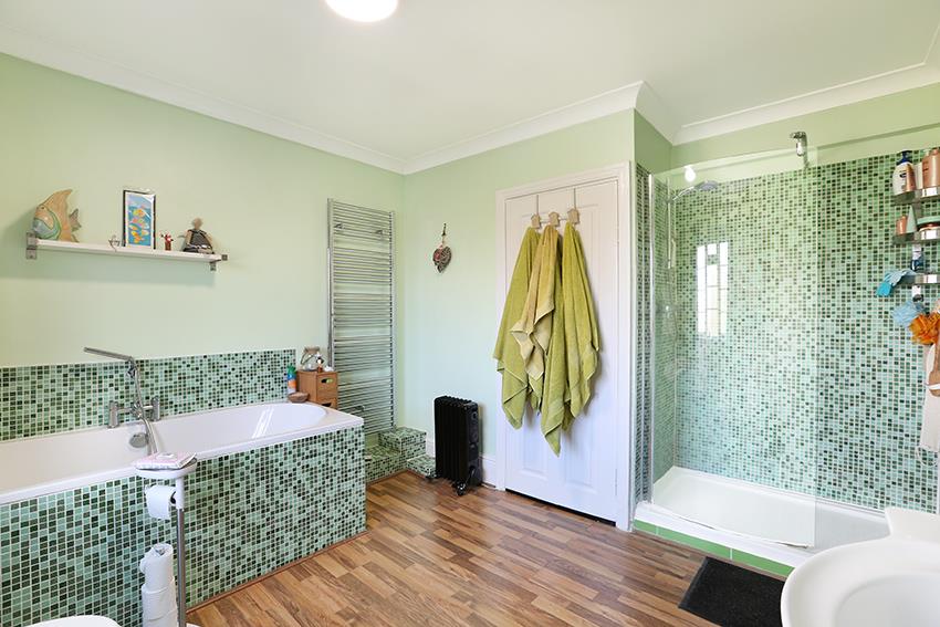 Upstairs, the property offers two generous double bedrooms and a family bathroom complete with both a bathtub and a separate shower. Outside, there is a private patio area.