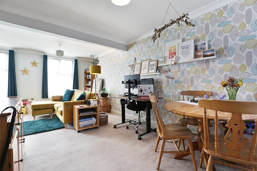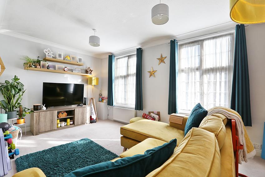 A larger than average split-level flat arranged over the first and second floors, featuring an entrance hall with access to a bright reception room and a separate fitted kitchen.